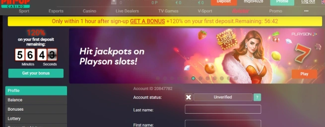 - Registe-se no site oficial da Pin-Up Bet Angola e confirme os dados de contacto.